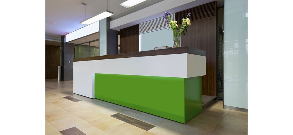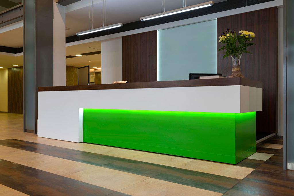 Стойка ресепшн создаст яркий и стильный образ вашему пространству, создавая одновременно деловую атмосферу и, в то же время, подчеркиваяя современный стиль вашей компании. Стойка выполнена из ЛДСП, декоративного пластика с подсветкой. Может быть выполнена также из МДФ, алюмокомпозита и других материалов. Стоимость за погонный метр может меняться в зависимости от выбранных материалов.