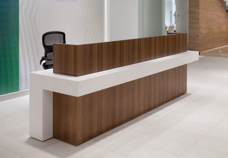 Лаконичный дизайн стойки в стиле "минимализм" делает ее актуальной для оформленных в различных стилях зон ресепшн - от "лофт" до "классики". Может быть выполнена из ЛДСП, алюмокомпозита, крашеного МДФ, декоративного HPL пластика или искусственного камня. Стоимость за погонный метр может изменяться в зависимости от выбранных материалов.