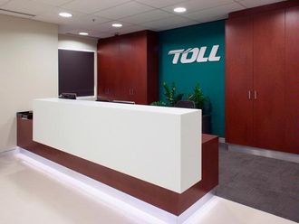 Современная стойка ресепшн, выполненная в двух цветовых гаммах. Лаконичный дизайн стойки делает ее актуальной для компании любого профиля. Может быть выполнена из ЛДСП, крашеного либо шпонированного МДФ, искусственного камня. Стоимость за погонный метр может изменяться в зависимости от выбранных материалов.